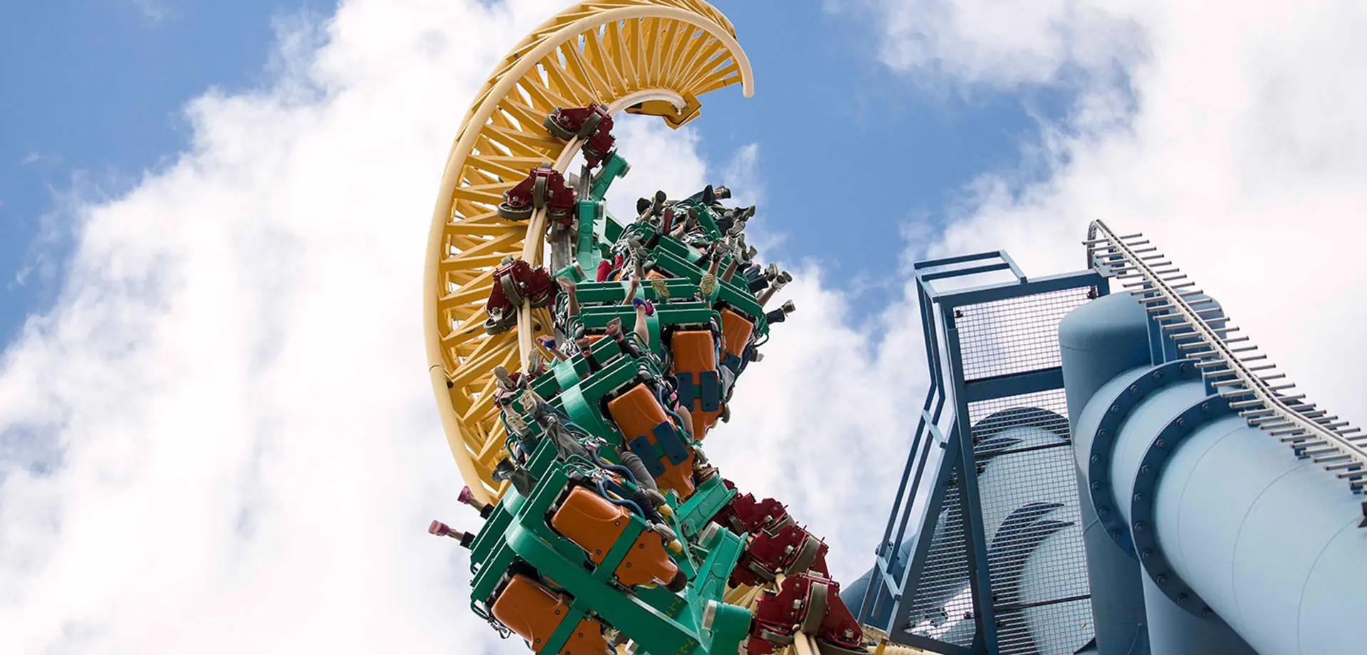 Hold on to your hats. Actually, scratch that. Don’t even wear one. Because to say you launch out of the station is an injustice. This coaster catapults you forward so quickly, you’re not even sure if there’s a track in front of you. But with a name like Steel Venom, are you surprised? Short as it may seem, one trip on the Steel Venom is enough to make you come back for seconds, thirds, and tenths.